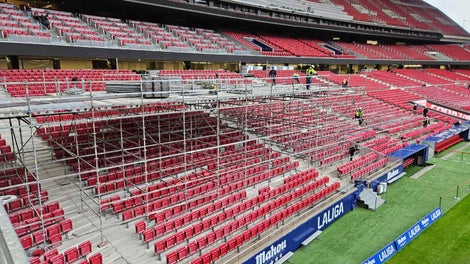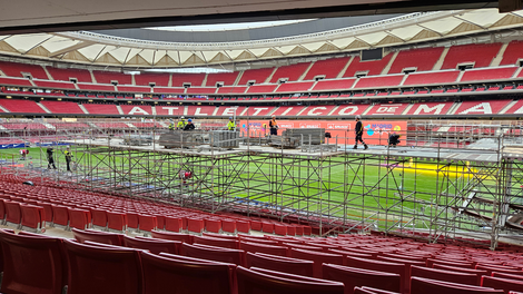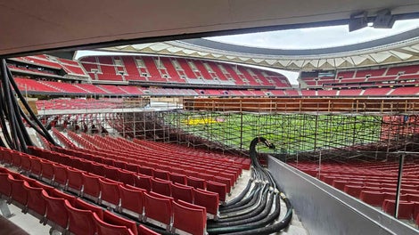 Con motivo de la instalación de una pista de hielo temporal durante la Navidad 2025, el cliente MRD necesitaba una solución segura y fiable para soportar toda la estructura perimetral de la pista alrededor del campo de fútbol del Wanda Metropolitano.