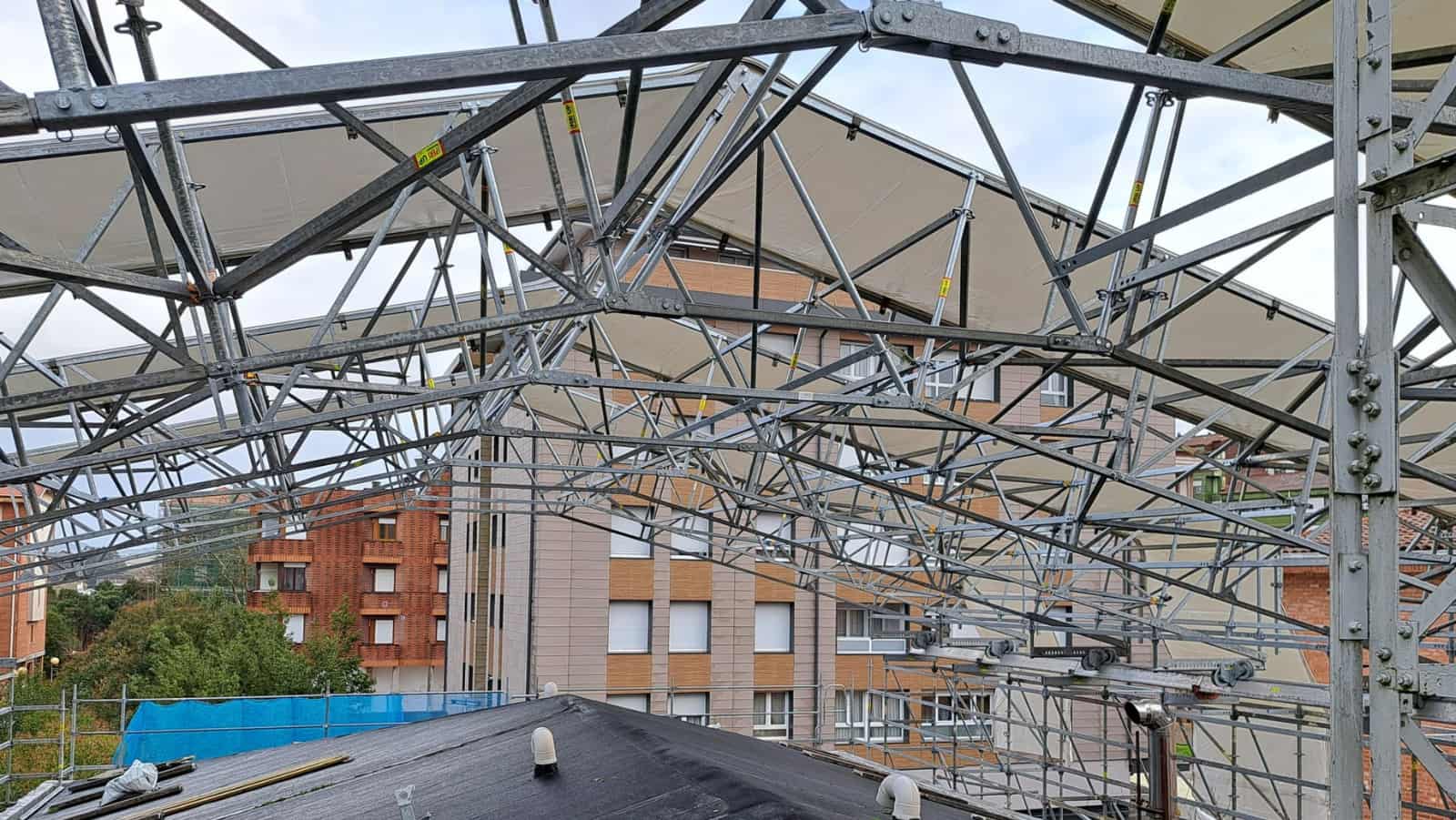 En Mungia, Vizcaya, hemos acompañado a nuestros cliente Andamios Ida Norte, S.L. en los trabajos de fachada y renovación de la cubierta en un edificio. Un proyecto que exigía seguridad, estabilidad y capacidad de adaptación a distintas fases de ejecución.